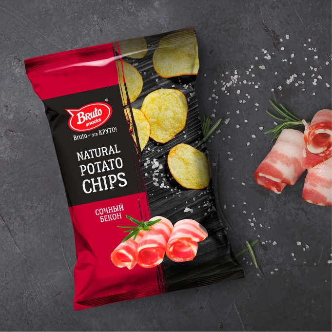 Если вас интересует хорошая закуска к пиву, то рекомендуем заказать и купить оптом в нашей компании жареную картошку «Бруто» (Bruto) со вкусом бекона. Снек готовится из натуральных продуктов и пищевых добавок идентичных натуральным. Чипсы имеют ярко выраженный вкус жаренной картошки. После поджарки и добавления специй картофель расфасовывают в специальные пакеты из крафт-бумаги – прочного оберточного материала из целлюлозы. Двухслойная упаковка позволяет сохранить целостность продукта, поэтому, открыв пачку вы не увидите сломанных чипсов.